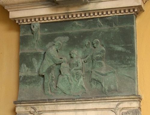 Obra anónima que se encuentra en la entrada principal del Sanatorio Pineta di Sortenna en Sondalo, Italia.